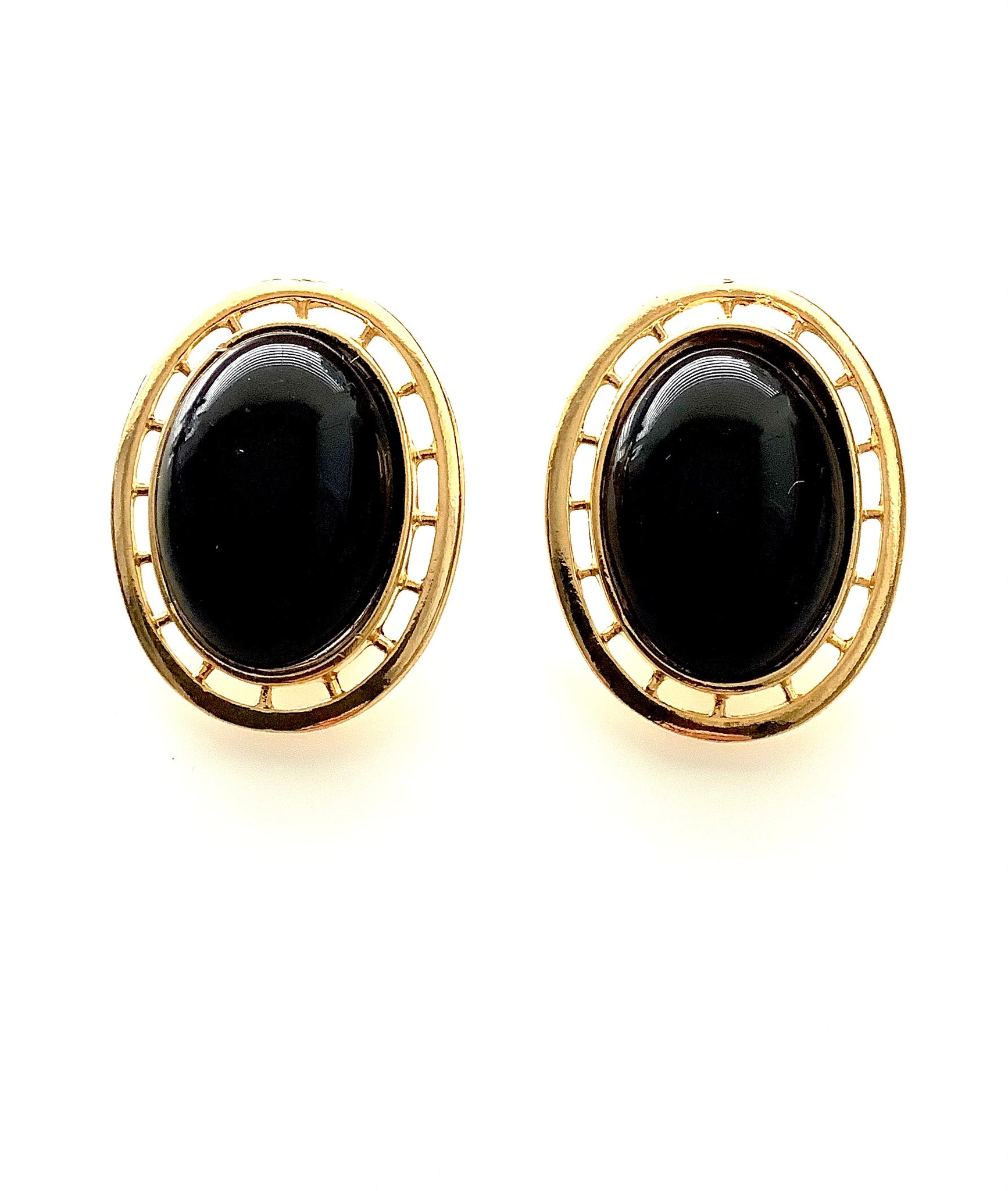 Clip on, vintage black and gold oval earrings from Olivia Divine.