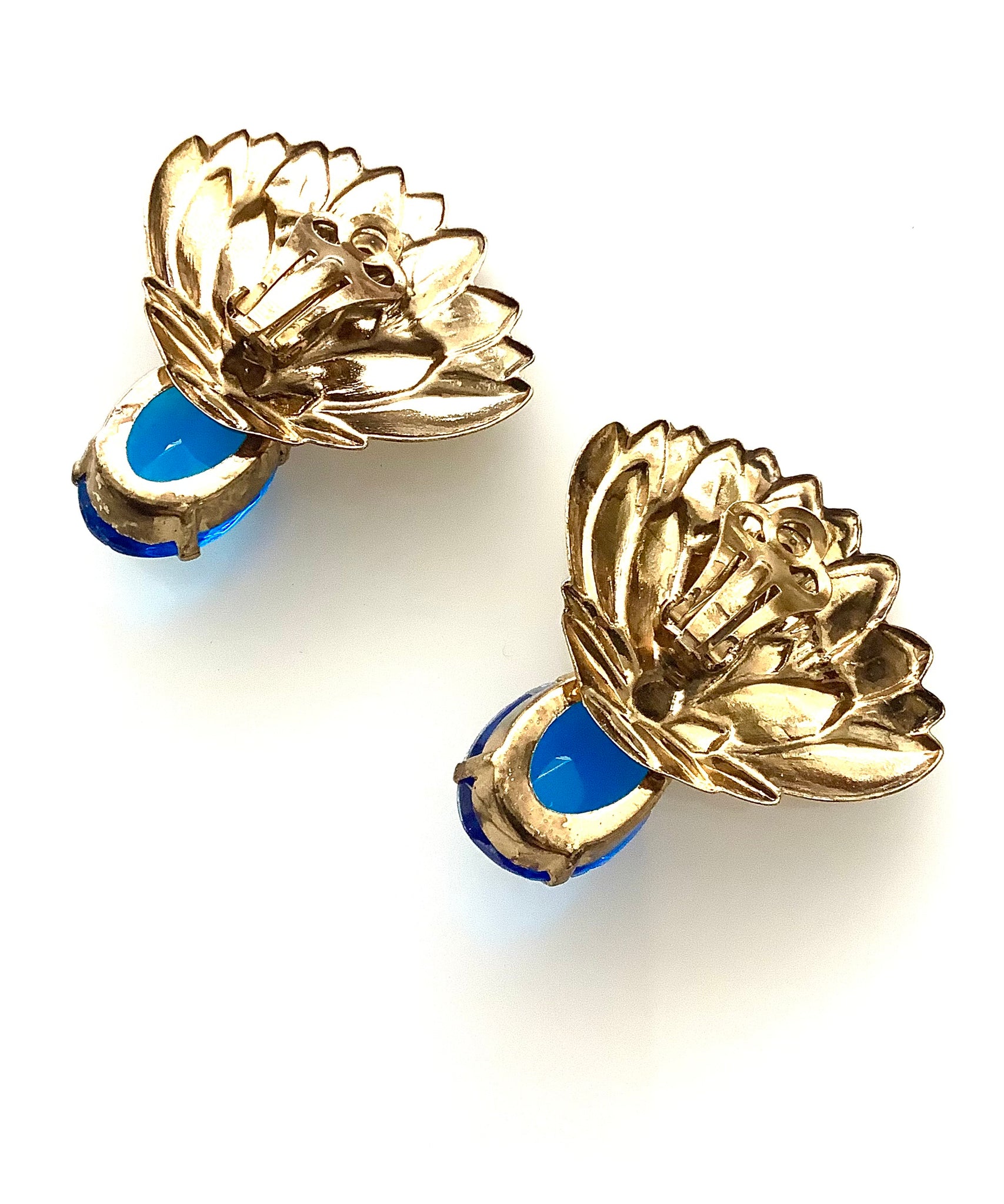 Clip on, vintage blue and gold fan style earrings from Olivia Divine.