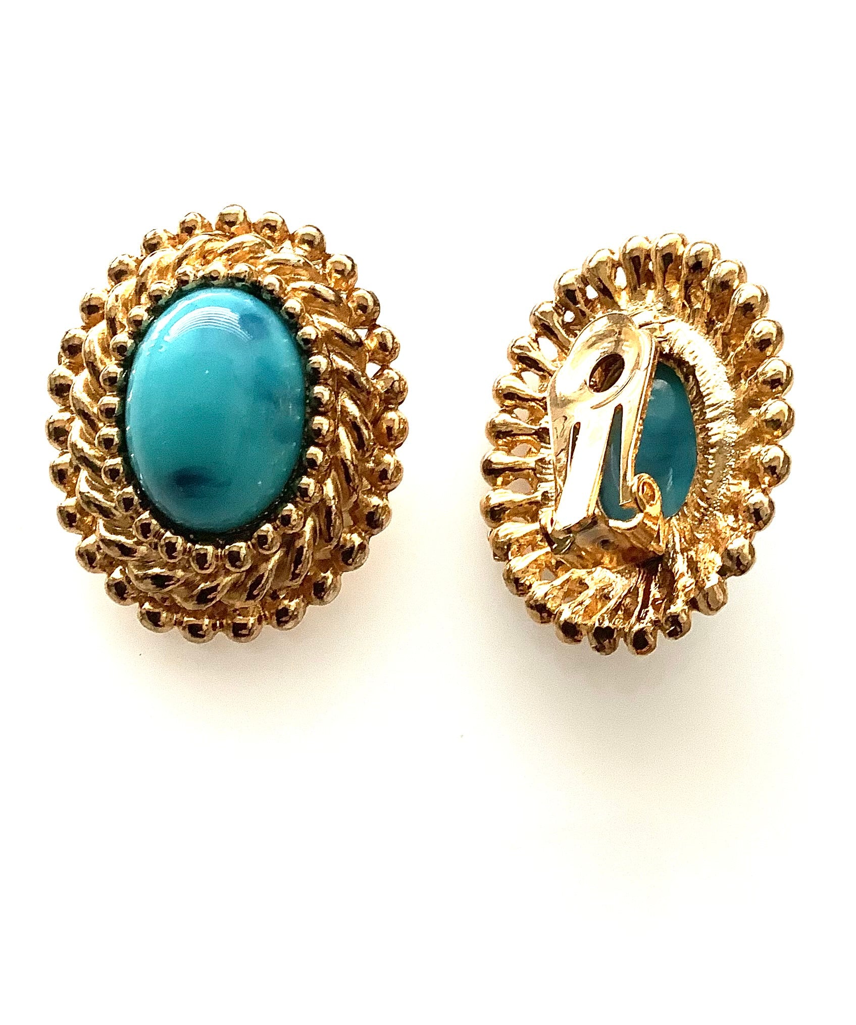 Clip on, vintage turquoise and gold earrings from Olivia Divine.
