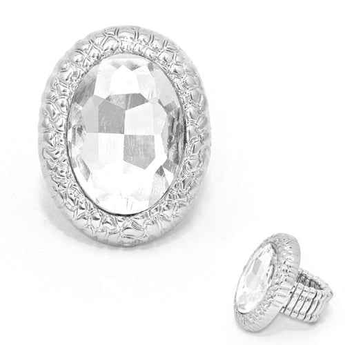 Silver Oval Jewelled Stretch Style Cocktail Ring