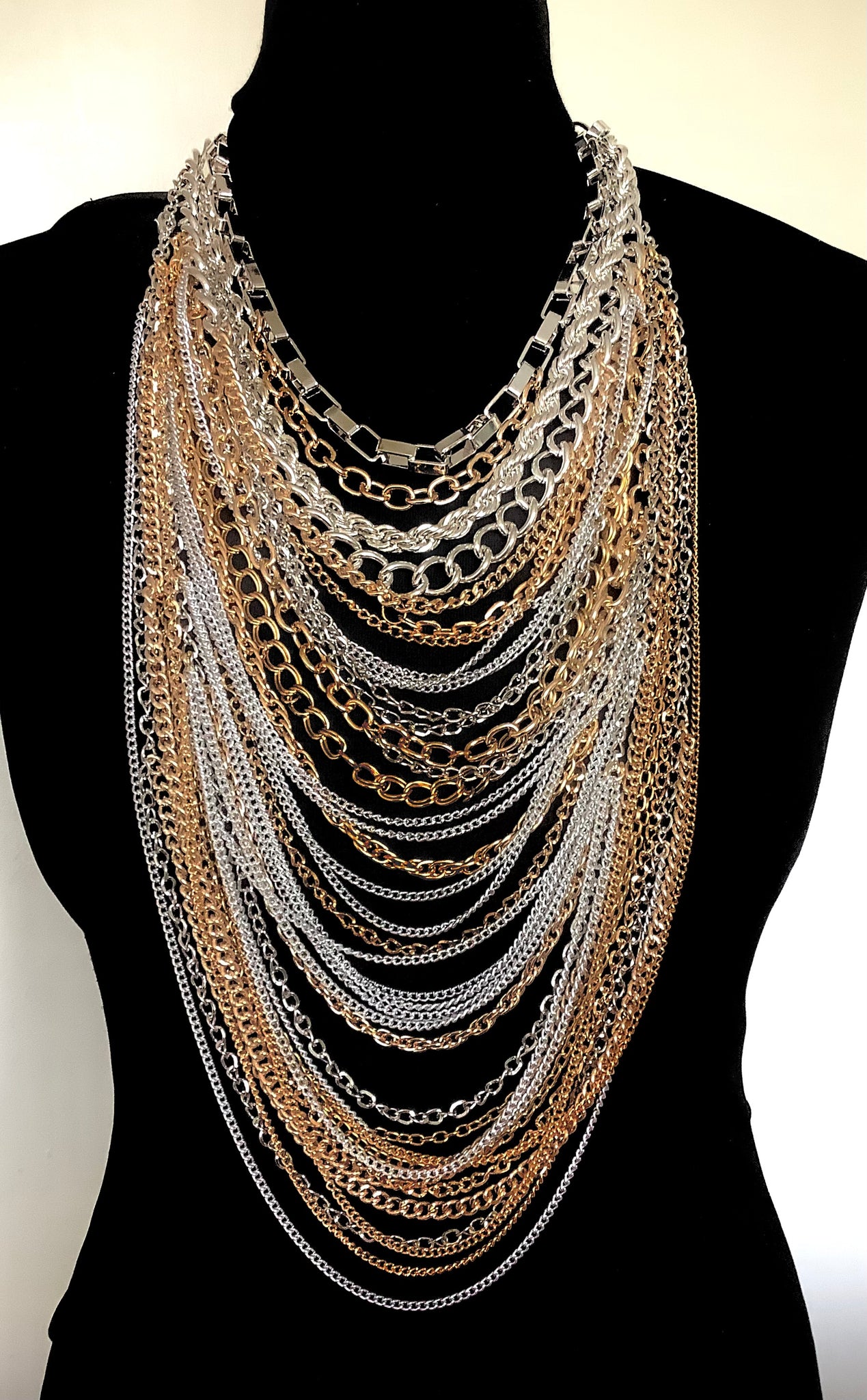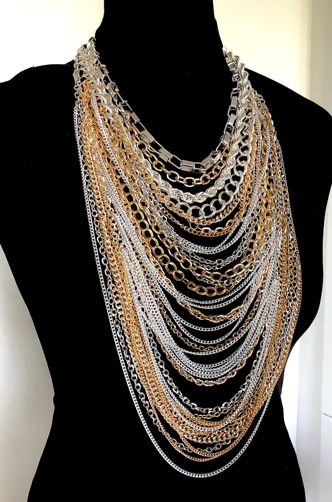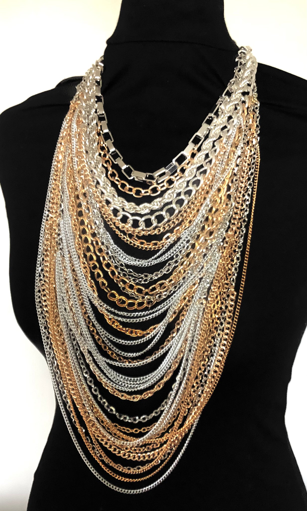 Stunning, gold and silver tone, long multi metallic chain necklace.