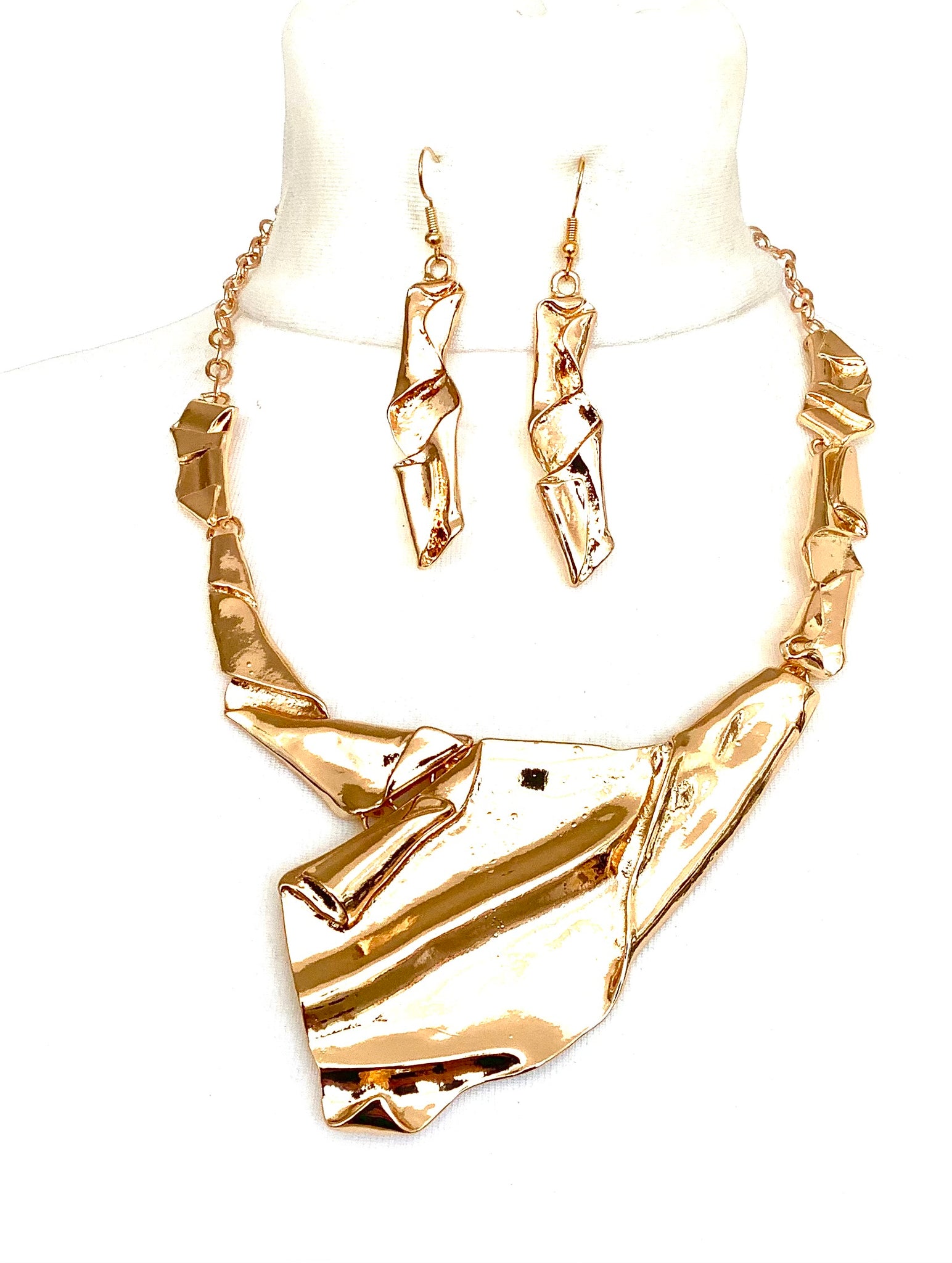 • Load image into Gallery viewer, Gold Metallic Abstract Necklace and Earrings Set