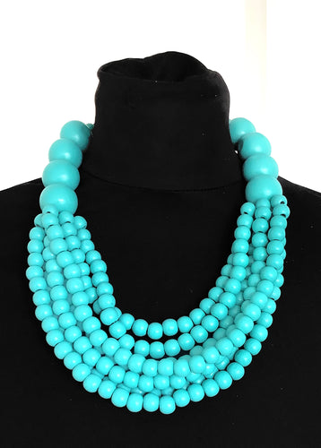 Chunky Turquoise Wooden Bead Necklace