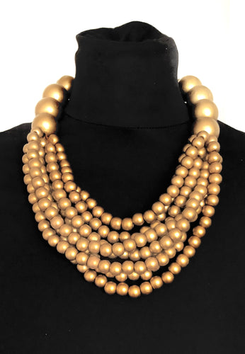 Chunky Gold Wooden Bead Necklace
