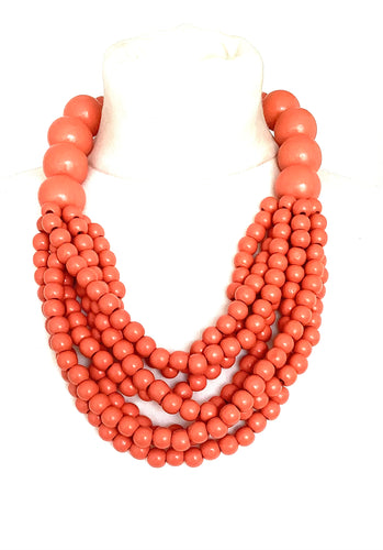 Orange Wooden Bead Statement Necklace