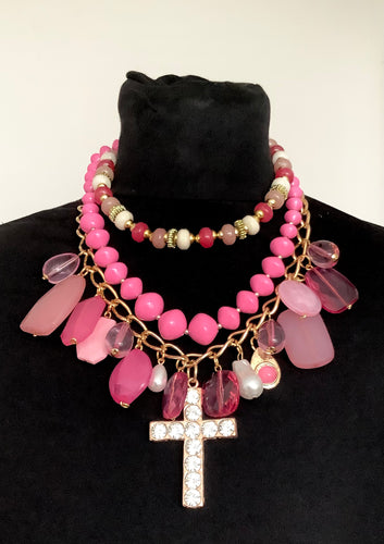 Pink Layered Bead Statement Necklace
