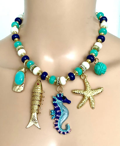 Gold Ocean Life Statement Necklace