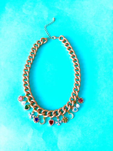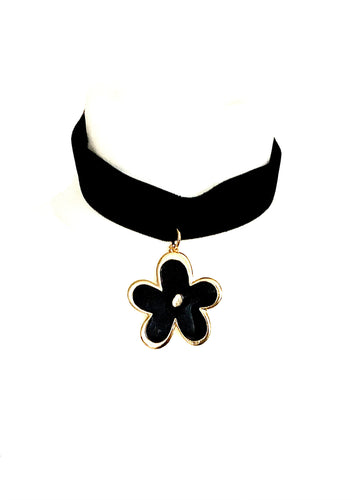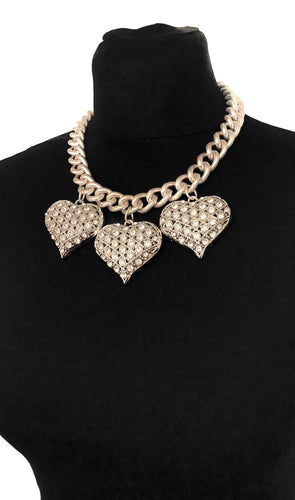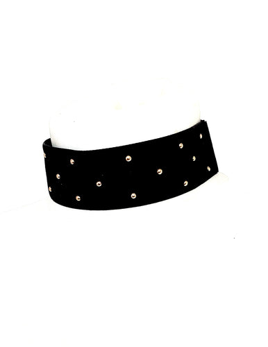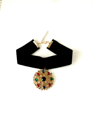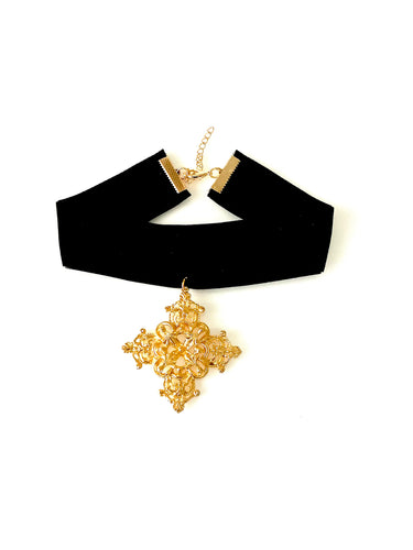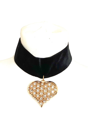 Black Velvet and Gold Crystal Heart Choker Necklace